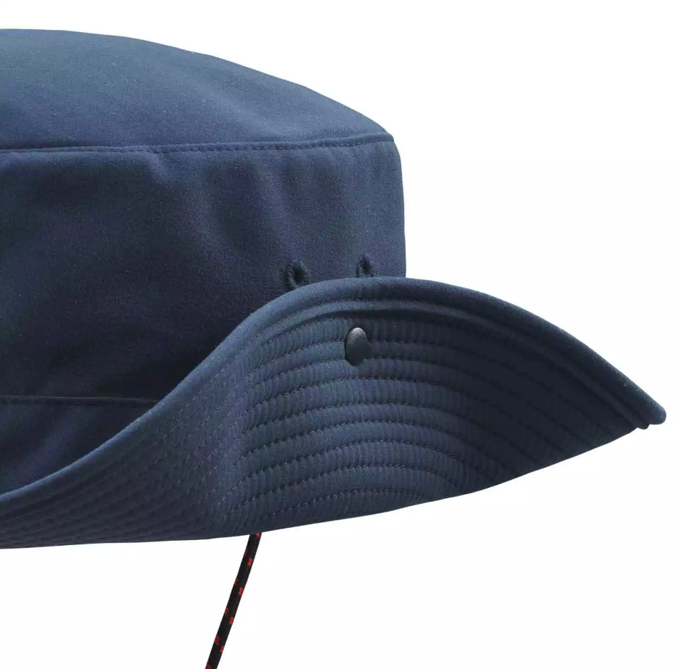 Bei Bedarf lässt sich die Krempe per Druckknopf fixieren, um uneingeschränkte Sicht zu gewährleisten. Ein verstellbarer Kinnriemen sorgt dafür, dass der Hut auch bei starkem Wind sicher an Ort und Stelle bleibt. Dank des UPF 50+ Schutzes werden schädliche UV-Strahlen effektiv blockiert, sodass Sie auch bei langem Aufenthalt an Deck optimal geschützt sind.