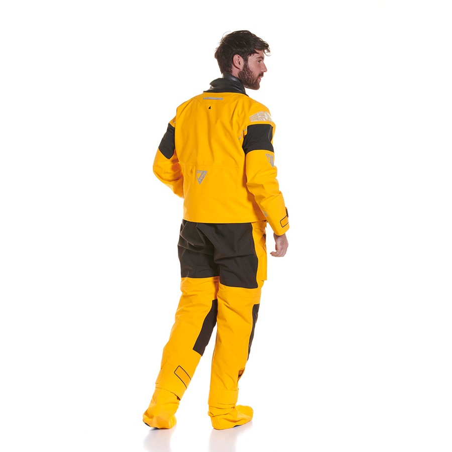 HPX – das ist eindeutig – steht bei uns für High Performance, also professionellen Einsatz. Entwickelt für die anspruchsvollsten Hochseesegler*innen, die in extremsten Bedingungen auf dem Wasser keine Kompromisse hinsichtlich der Atmungsaktivität, Dichtigkeit und Strapazierfähigkeit eingehen dürfen. Diese hohen Anforderungen erfüllt die HPX Serie technisch durch ein 3-Lagen Laminat mit einer GORE-TEX® Pro Ocean Technology® Membrane und einer Gore™ Micro Grid Futter-Technologie. Kompromisslos sind die Produkte bis in die kleinsten Details optimiert – jede Naht und jedes kleinste Feature ist durchdacht. Im Fall eines Schiffbruchs oder Überbordgehens bietet der Trockenanzug 2 – 3 Stunden Überlebenszeit in 5°C kaltem Wasser. Mehr als 50 Jahre Branchenerfahrung, unsere Zusammenarbeit mit den Technikspezialisten von GORE und über 10.000 Teststunden im Südpolarmeer haben zu diesem revolutionären und leistungsstarken Trockenanzug geführt, der nachweislich Leben rettet. Das überarbeitete Modell überzeugt mit verbessertem Schnitt, neuem Design und cleveren Details. Zusätzlich hat MUSTO großen Wert auf Nachhaltigkeit gelegt und den Anzug aus recycelten Materialien gefertigt. Der hochwertige YKK-Reißverschluss läuft nun horizontal entlang der Hüfte und ermöglicht ein leichteres Ein- und Austeigen in den Anzug. Die Hals- und Handgelenksmanschetten sind aus Latex gefertigt, in Kombination mit den GORE-TEX Füßlinge sorgen diese für einen vollständigen, wasserdichten Schutz. Die clever geschnittene Kapuze ist verstellbar und Helmkompatibel. Reflektoren an Schulter und Armen garantieren gute Sichtbarkeit. Praktische Taschen auf den Oberschenkeln bieten Platz für das Nötigste, zusätzlichen Stauraum bietet die neue Kängurutasche. Fleece-Einsätze im Hals- und Taschenbereich erhöhen den Komfort, genauso wie die Kniepolster – für maximalen Tragekomfort auf langer Strecke.