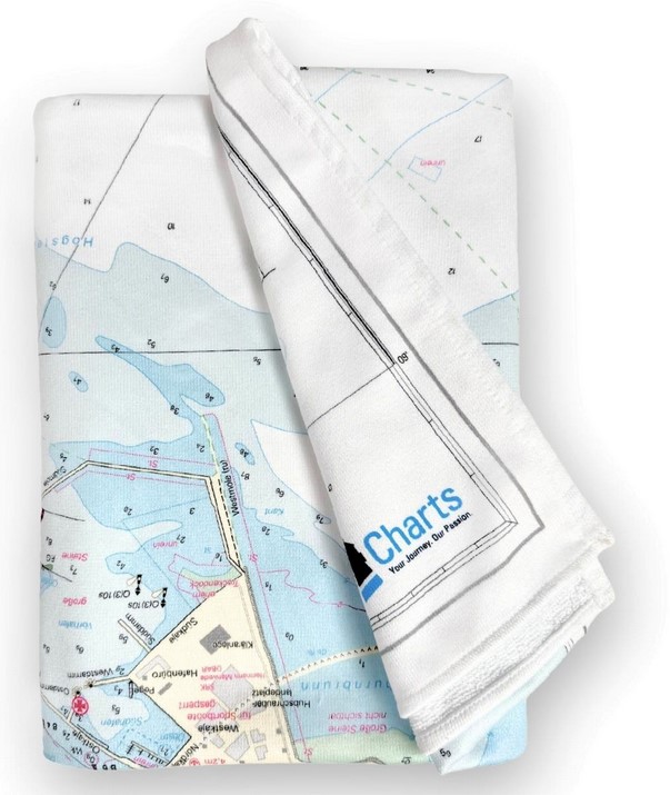 Die hochwertige Materialkombination aus weicher Baumwolle innen und glatter Polyesteroberfläche außen sorgt für ein angenehmes Hautgefühl, während die abgebildeten Kartendesigns klar, farbintensiv und detailreich erscheinen. Mit 100 × 150 cm bietet das Handtuch großzügig Platz, ist gleichzeitig platzsparend und perfekt geeignet für den Einsatz an Bord von Segel- und Motorbooten.