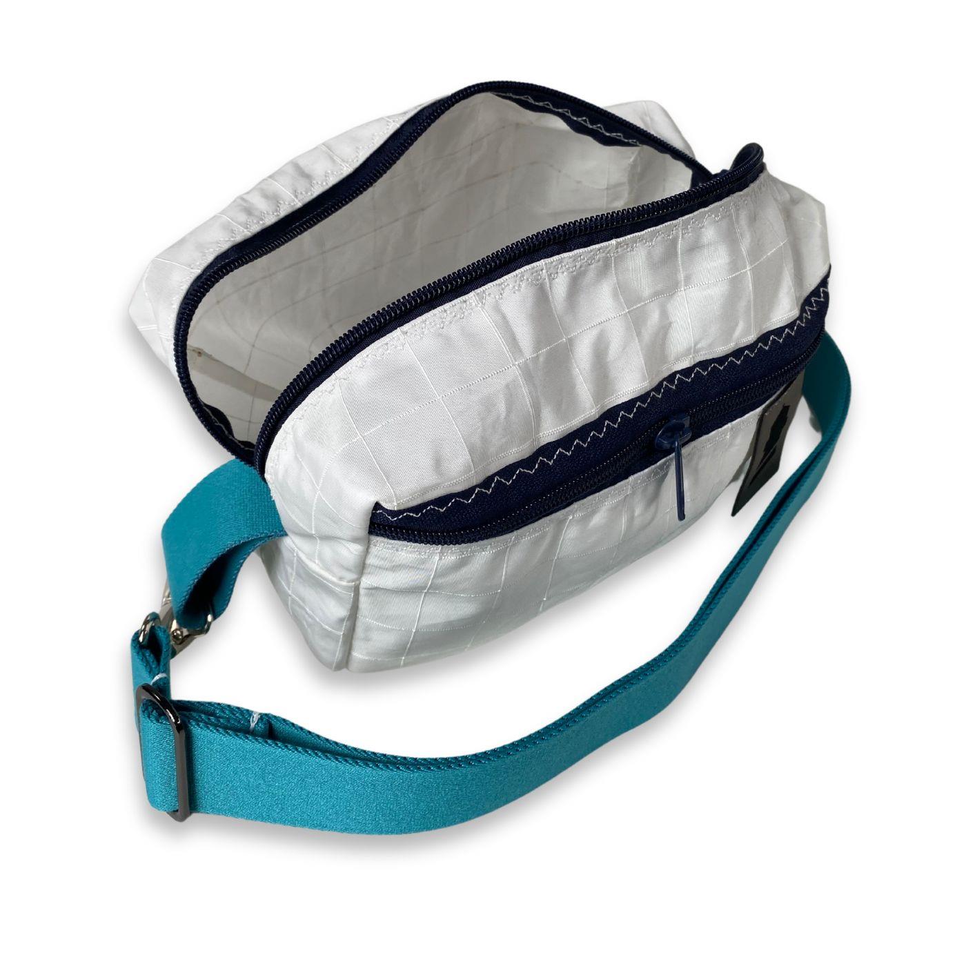 Die NV Umhängetasche Utö ist der ideale Begleiter für alle, die unterwegs nur das Wichtigste dabeihaben möchten – stylisch, leicht und wetterfest verpackt. Gefertigt aus robustem, recyceltem Segeltuch, vereint die Utö maritimes Design mit hoher Funktionalität. Jede Tasche ist ein handgefertigtes Unikat, geprägt durch die individuelle Struktur und die Gebrauchsspuren des Originalsegels.