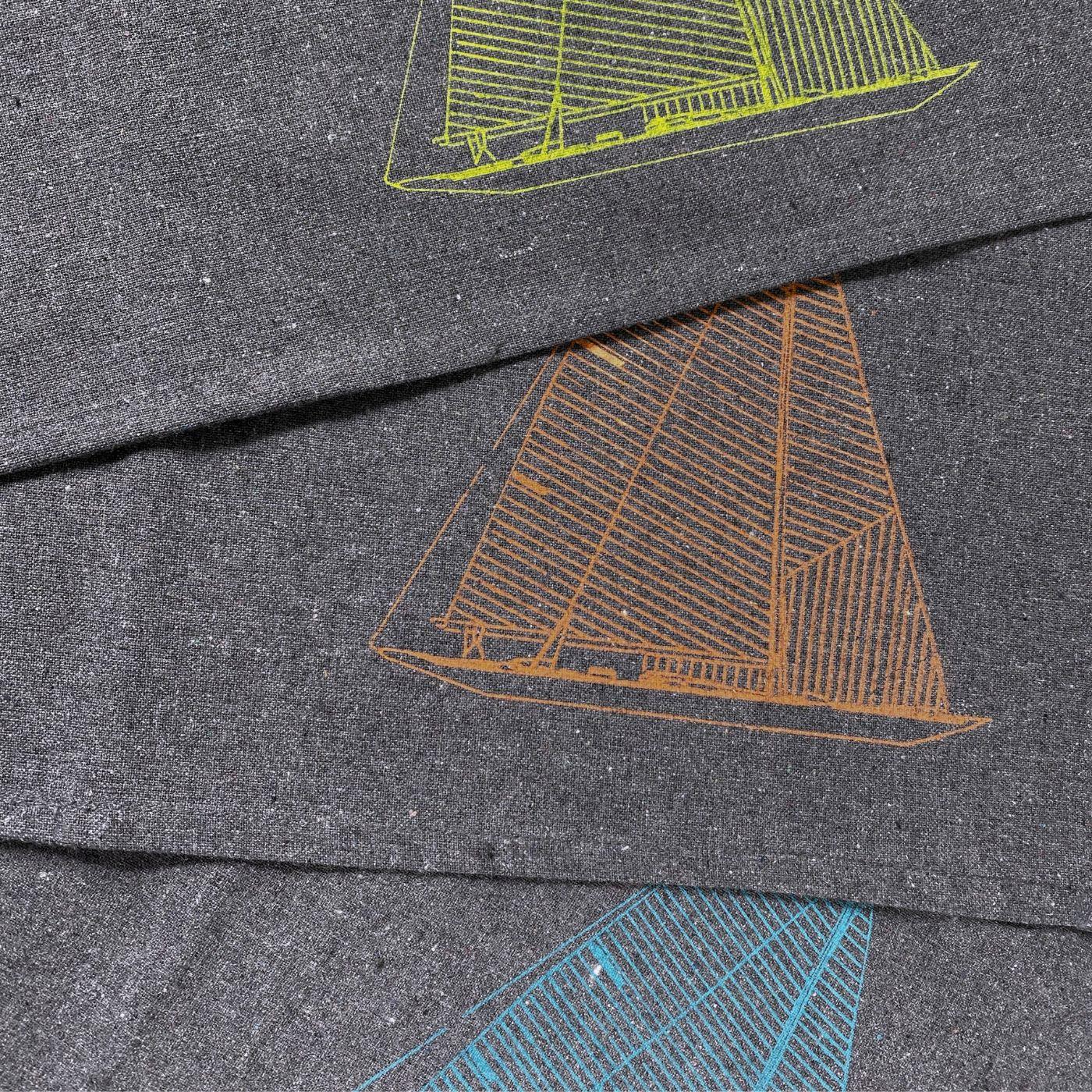 Die NV Tischsets 12mR grau/bunt verbinden maritimen Lifestyle, Nachhaltigkeit und moderne Bordästhetik. Gefertigt aus 100% recycelter Baumwolle bieten sie eine hochwertige, natürliche Stoffbasis und punkten gleichzeitig durch ihr bewusst umweltfreundliches Material. Jedes Set besteht aus vier einzelnen Platzmatten im Format 48 × 34 cm, die mit vier unterschiedlichen Neon-Siebdruckmotiven berühmter 12mR-Yachten versehen sind. Die kräftigen Farben wirken modern, sportlich und maritim – ohne an Langlebigkeit zu verlieren, denn sie sind farbecht, pflegeleicht und maschinenwaschbar.
