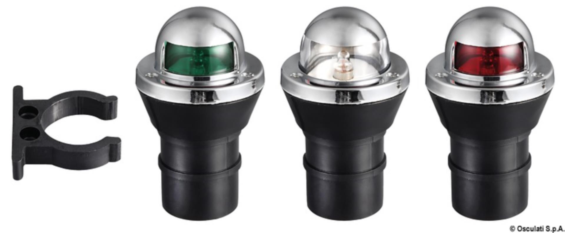 Praktisches Navigationslampen Set ( Grün/ROT/WEISS) für 1,5 V Baterien (nicht im Lieferumfang), Gehäuse schwarzes ABS , Top verchromtes ABS mit Clip-on System.