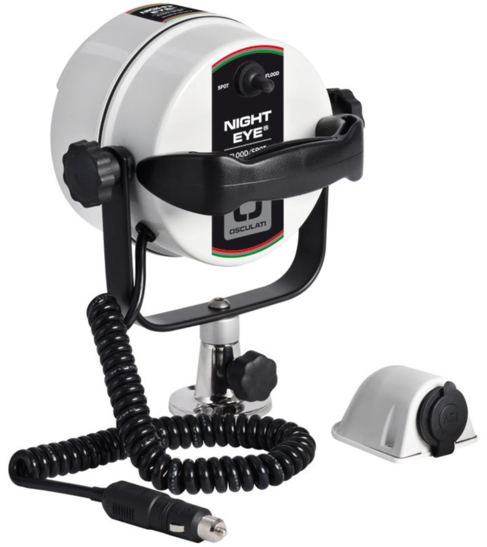 Der Night Eye LED Scheinwerfer kombiniert robuste Bauweise mit modernster LED-Technologie. Gefertigt aus schlagfestem ABS und ausgestattet mit einem Eloxal Befestigungsbügel sowie einem Sockel aus verchromtem Messing, bietet er eine zuverlässige und langlebige Lösung für Ihre Bootsbeleuchtung.