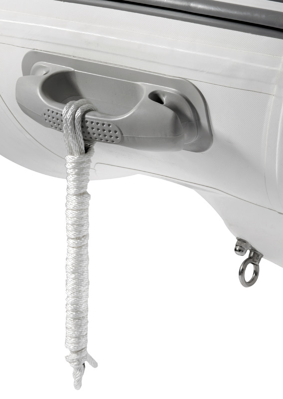 Das robuste Material ist auf den dauerhaften maritimen Einsatz ausgelegt und widersteht UV-Strahlung, Feuchtigkeit und mechanischer Belastung. Der Innenbereich ist praxisgerecht gestaltet und bietet guten Halt beim Ein- und Aussteigen. Trotz Festrumpf bleibt das Handling komfortabel – sowohl beim Zuwasserlassen als auch beim Anheben an Bord.