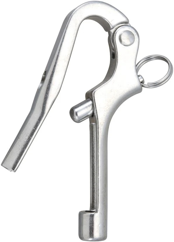 Gefertigt aus hochwertigem Edelstahl AISI 316, ist der Haken dauerhaft korrosionsbeständig und bestens für den Einsatz in Salzwasser geeignet. Das Innengewinde ermöglicht eine stabile, formschlüssige Verbindung mit Gewindestangen, Spannschrauben oder Relingsdurchzügen. Der integrierte Patentverschluss sorgt dafür, dass sich der Haken auch unter Last schnell öffnen und sicher schließen lässt – ein klarer Vorteil bei Manövern, temporären Befestigungen oder Sicherheitsanwendungen an Deck.