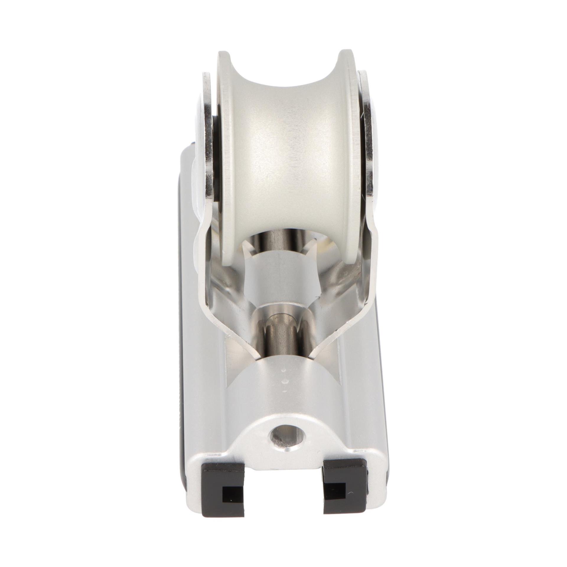 Mit einer Bruchlast von 750 kg und rollen mit 30 mm Durchmesser bieten die Schlitten höchste Belastbarkeit und eine reibungsarme Bewegung. Das arretierbare System ermöglicht eine präzise Fixierung der Schlittenposition, was maximale Kontrolle beim Trimmen der Segel gewährleistet.