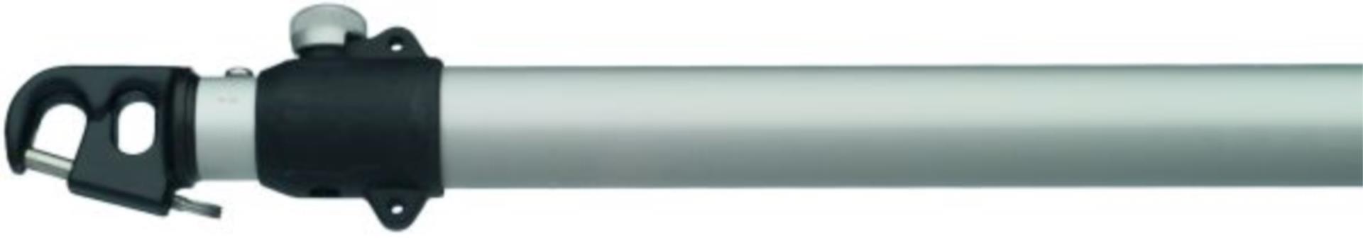 Die Arretierung erfolgt über einen Federbolzenmechanismus, der alle 25 cm eine feste Verbindung zwischen den Rohren herstellt. Ein praktisches Detail: Der Bolzen lässt sich durch Verdrehen des Knopfes fixieren, um Schleifspuren beim Einstellen zu vermeiden. Damit bietet der Pfeiffer Ausbaumer eine präzise Handhabung und maximale Sicherheit – auch unter Last.