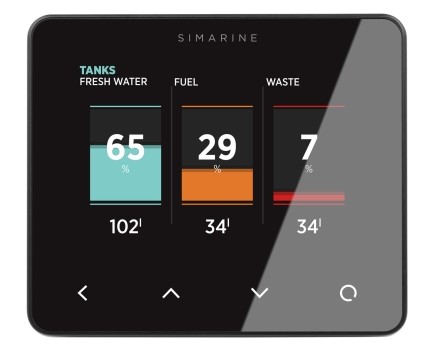 Das PICO von SIMARINE stellt die Restkapazität von Batterien, Tanks in verständlicher visueller Form über das grafische Design-Display dar. Die Anzeigen, Einstellungen und Updates können über die kostenfreien Apps (Andoid, iOS) per WiFi dargestellt und verändert werden. Mit integriertem Barometer.
