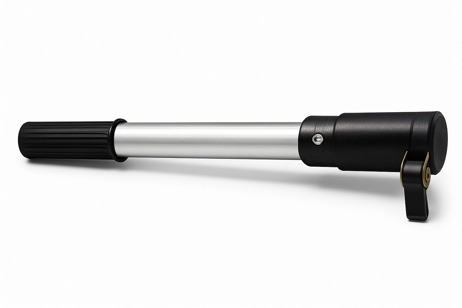 Die Verlängerung ist aus robustem, eloxiertem Aluminiumrohr gefertigt und hält selbst starker Beanspruchung stand. Das patentierte Schnappverschluss-System sorgt für eine schnelle und sichere Verbindung mit der Originalpinne – ganz ohne Werkzeug. Ein stabiler Gummigriff liegt angenehm in der Hand und bietet auch bei Nässe hervorragenden Halt. Das Anschlussstück aus strapazierfähigem Nylon garantiert eine langlebige, spielfreie Verbindung.