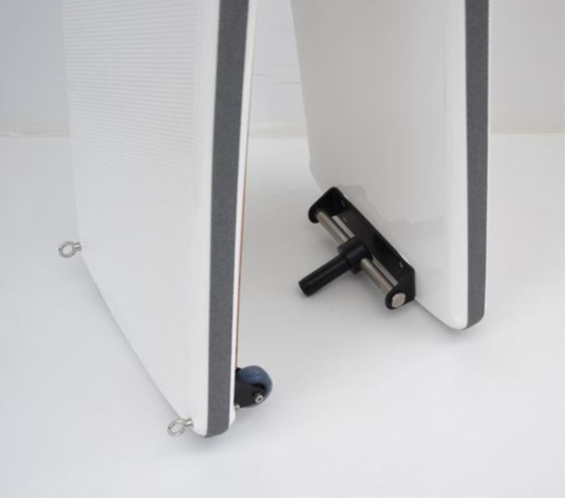 Alle Metallteile bestehen aus 316L-Edelstahl oder eloxiertem Aluminium, was Langlebigkeit und Korrosionsbeständigkeit garantiert. Die Räder auf der Dockseite rollen flexibel mit dem Boot, sodass das Ein- und Aussteigen besonders komfortabel ist. Dank der klappbaren Konstruktion lässt sich die Gangway einfach verstauen – ideal für Marinas, Trailerboote oder Yachten mit begrenztem Stauraum.