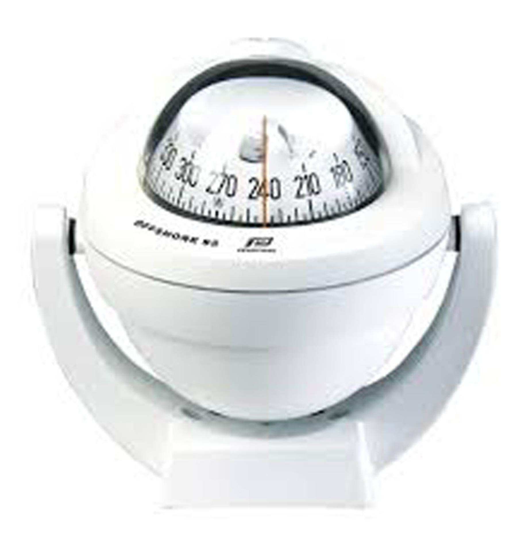 Der Plastimo Offshore 95 mit weißem Gehäuse und schwarzer konischer Rose ist ein moderner, robuster Kompass für Motorboote von 6 bis 12 Metern Länge. Dank integriertem Vibrationsabsorber, 12V-Beleuchtung und Kompensator liefert er präzise Richtungsangaben und optimale Ablesbarkeit – auch bei schwierigen Bedingungen auf See. Der praktische Haltebügel ermöglicht eine flexible Montage auf dem Armaturenbrett oder der Konsole. Damit vereint der Offshore 95 Funktionalität, Stil und höchste Zuverlässigkeit für Ihre maritime Navigation.