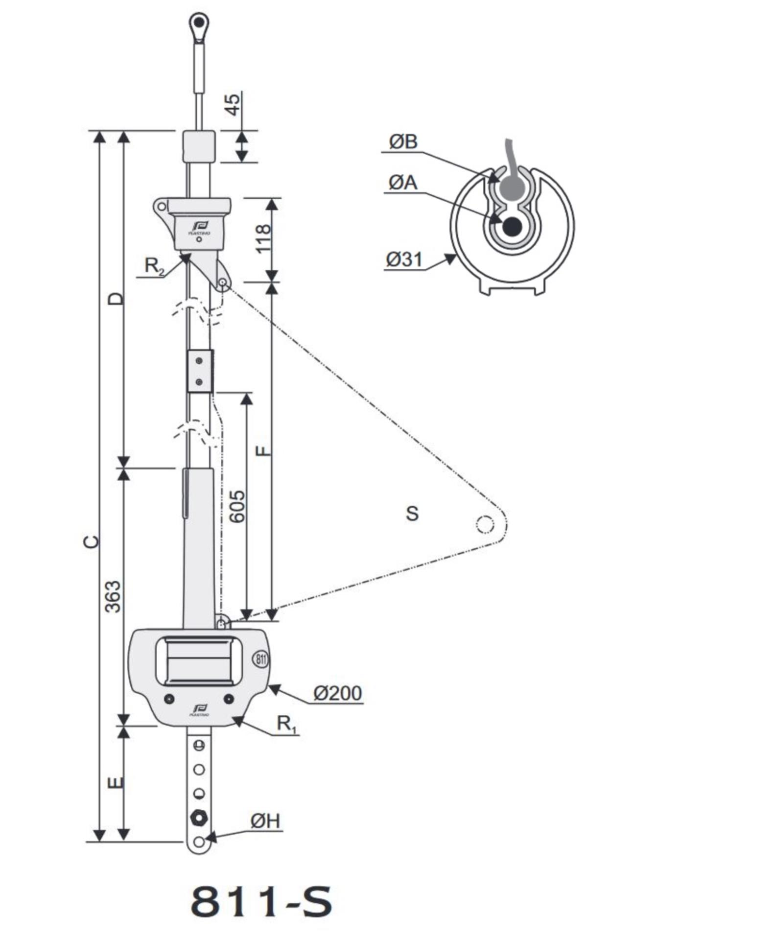 Die verstellbaren Kettenplatten ermöglichen flexible Montagen an Terminal- oder Stagspannerpunkten, wodurch die 811S für eine Vielzahl von Segelbooten und Vorsegelgrößen bis 35 m² geeignet ist. Mit einer Trommelblattkapazität von 17,5 m bei 8 mm Durchmesser bietet das System präzise Steuerung und optimalen Komfort beim Reffen.