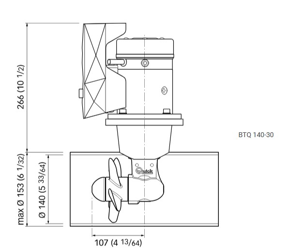 Mit einer Schubkraft von 30 kgf und einem Tunneldurchmesser von 140 mm ist das BTQ 140-30 ideal für kleinere bis mittelgroße Yachten und Motorboote geeignet.