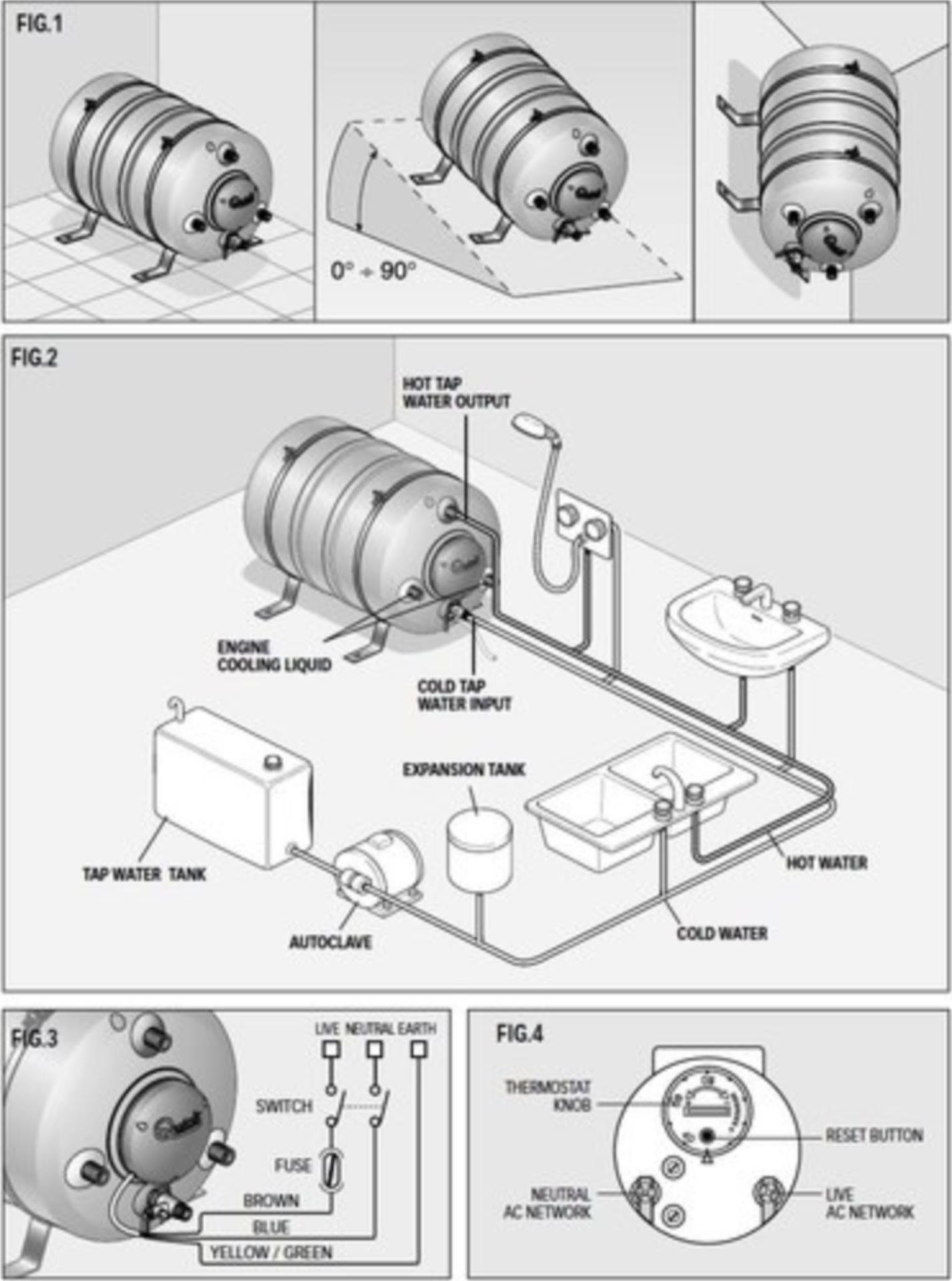 Der Quick Warmwasserboiler bietet komfortables Warmwasser an Bord von Booten und Yachten. Dank der doppelten Heizfunktion kann er entweder mit der elektrischen Heizpatrone (220 V / 500 W) oder über den Wärmetauscher am Motorkühlkreislauf betrieben werden. So ist jederzeit warmes Wasser verfügbar – effizient und energiesparend, besonders während der Fahrt.