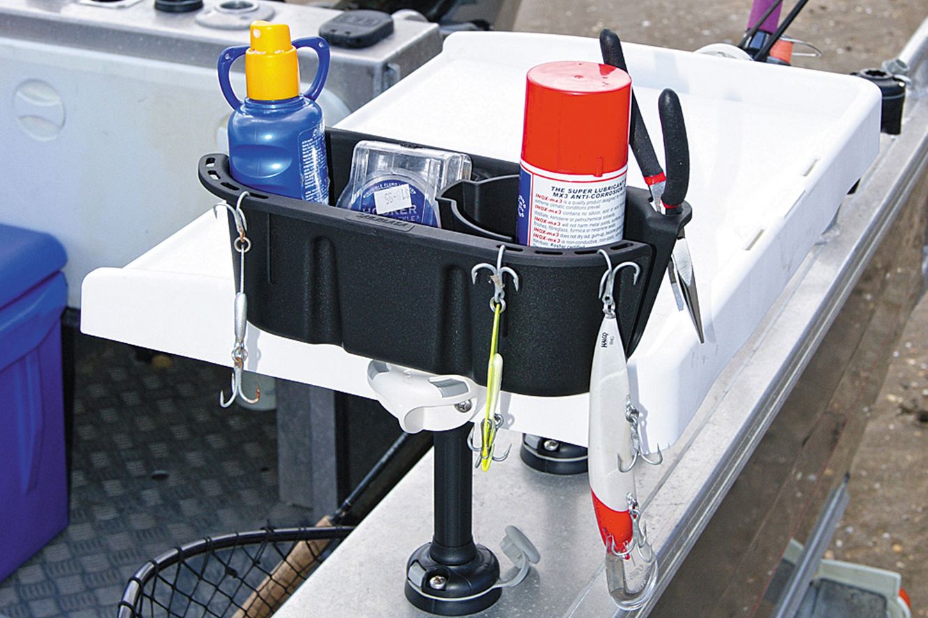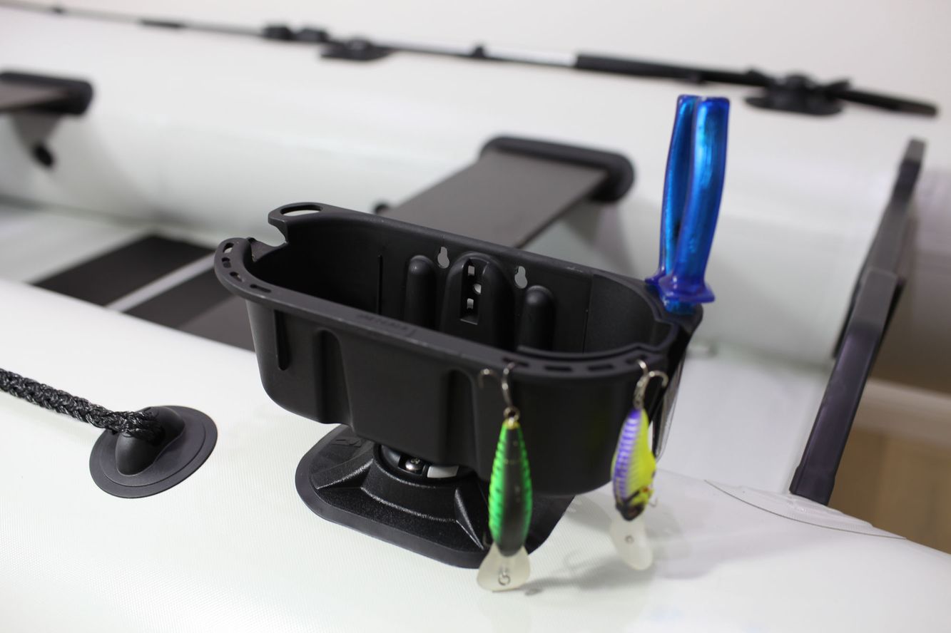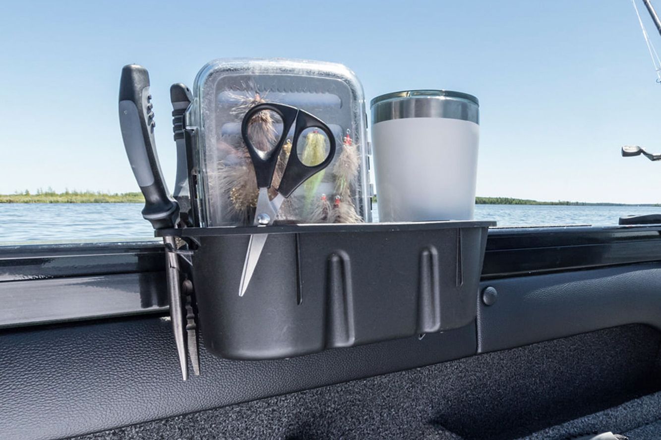 Der StowPod ist nicht nur ein Getränkehalter: Messer, Wobbler, Zange, Funkgerät oder Fernglas finden hier ebenso sicher ihren Platz. Dank der beweglichen Trennwand lassen sich Getränke sauber von anderen Utensilien trennen.