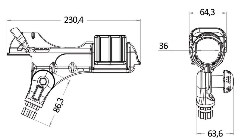 Der Rutenhalter ist 360° drehbar und stufenweise auf 90° geneigt justierbar. Der einklappbare hintere Riegel verhindert das Herausragen der Rute, sodass du mehr Platz im Boot hast. Durch den Verriegelungsschieber fällt die eingelegte Rute nicht heraus.