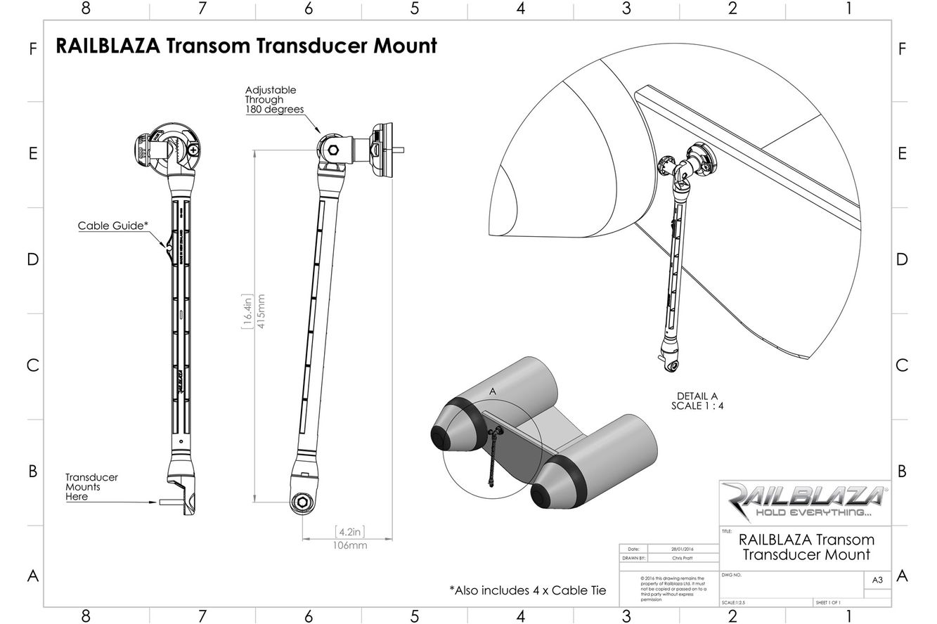 Die RAILBLAZA Transducer Arm XL ist eine Echolot-Geberstange speziell für Schlauchboote oder hohe Boote, die eine sichere und stabile Befestigung des Echolot-Gebers am Heckspiegel ermöglicht.