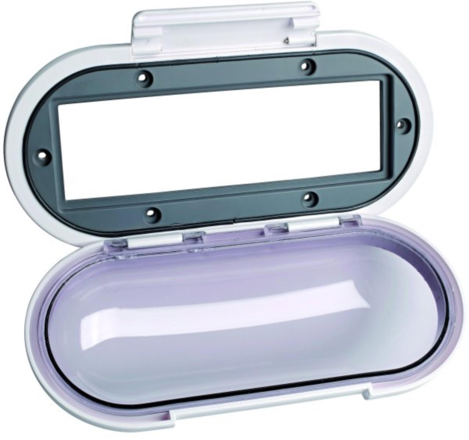 Die spritzwassergeschützte Radio-Aufbaublende ist die perfekte Lösung, um Ihr DIN-Radio sicher, funktional und optisch ansprechend auf Booten, Yachten oder im Caravan zu integrieren. Das formschöne weiße Kunststoffgehäuse harmoniert mit jedem Interieur, während die gewölbte, klappbare Plexi-Rauchglasabdeckung das Radio effektiv vor Feuchtigkeit, Spritzwasser und Witterungseinflüssen schützt.
