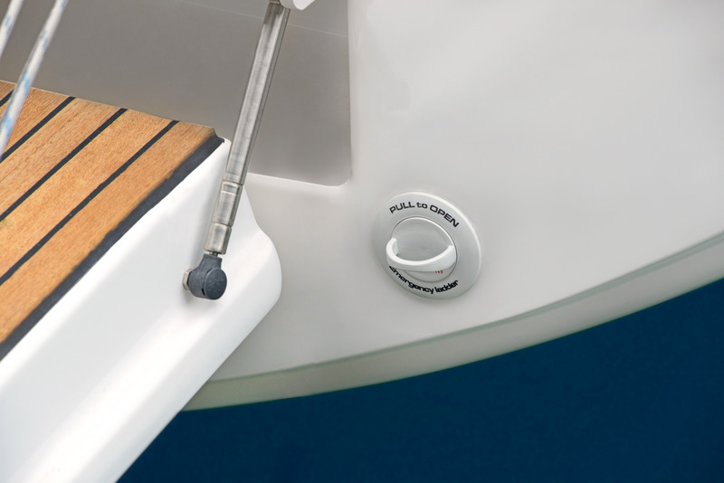 Die Rettungsleiter wird fest am Heck, seitlich am Rumpf oder an der Badeplattform über der Wasserlinie montiert. Im Notfall ermöglicht sie es über Bord gegangenen Personen, sich selbstständig wieder an Bord zu ziehen – ohne Hilfe von oben.