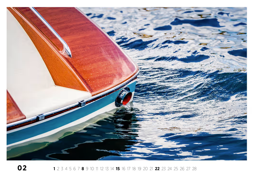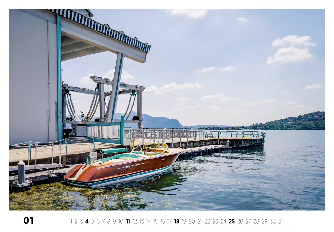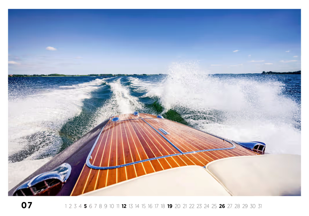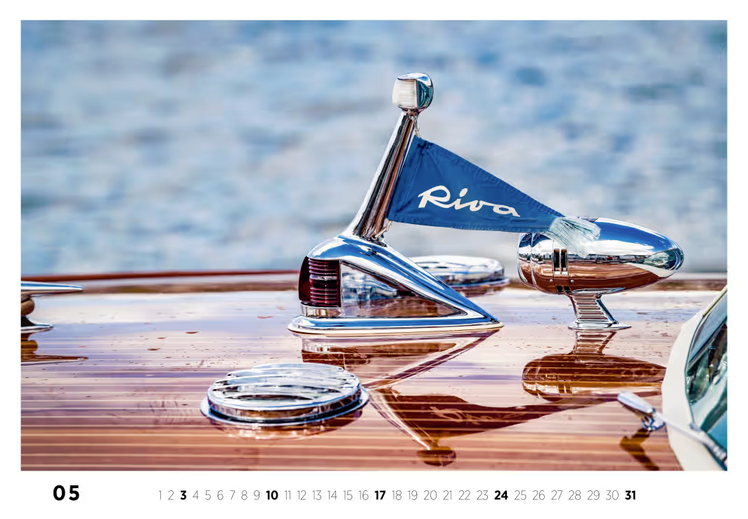 Seit der Gründung im Jahr 1842 steht Riva für Luxus, Eleganz und Lebensfreude. Als „Rolls-Royce des Meeres“ zog die Marke über Jahrzehnte Prominente wie Brigitte Bardot, Sophia Loren oder George Clooney in ihren Bann. Jeder Monat dieses Kalenders präsentiert ein neues Kapitel dieser Legende – von klassischen Mahagoni-Yachten bis zu modernen Designikonen.