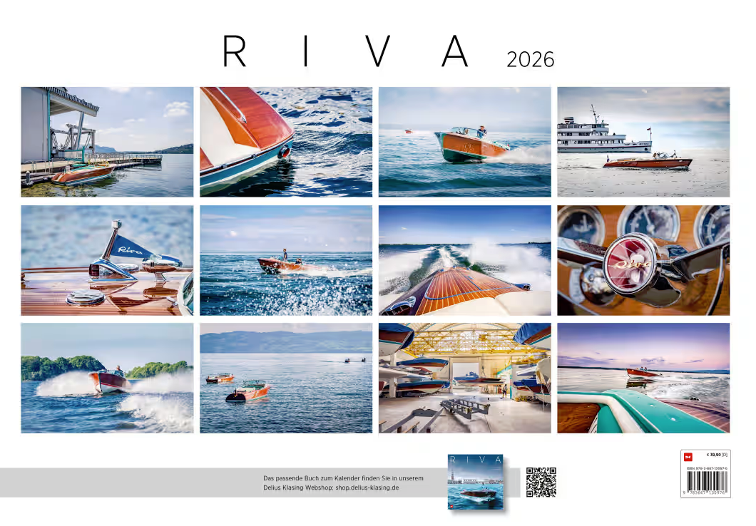 Mit 13 brillanten Farbfotografien, edlen Bilderläuterungen und einem imposanten Großformat von 48 x 68 cm wird der Riva Kalender 2026 zu einem luxuriösen Blickfang – perfekt als Geschenk oder für alle, die den maritimen Lifestyle lieben.