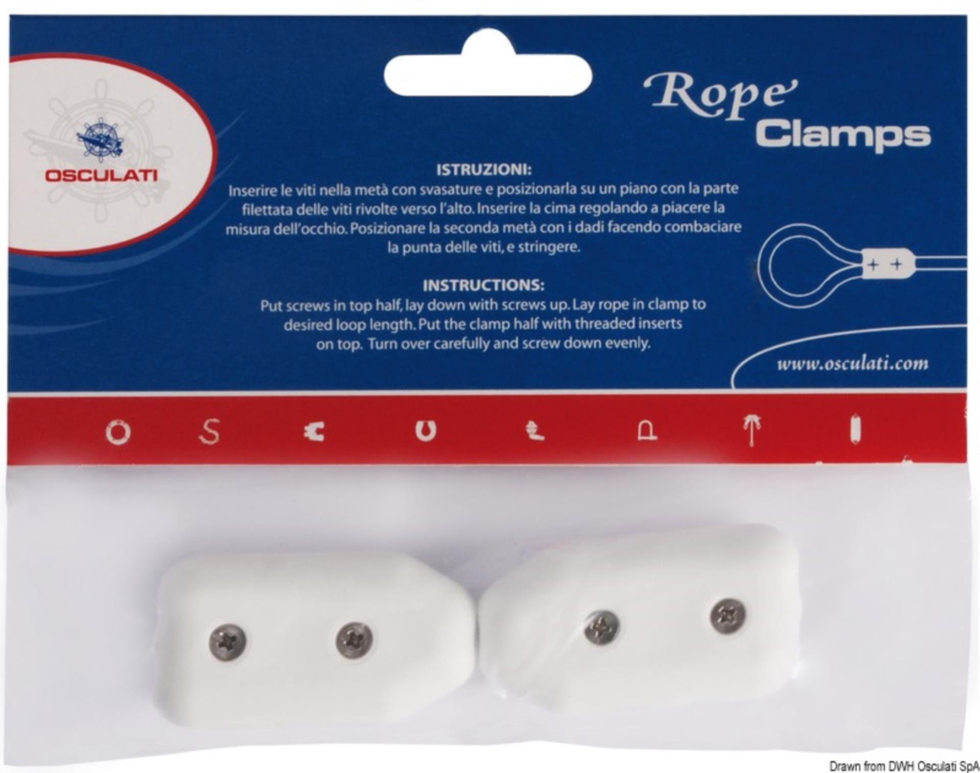 Mit den Rope Clamps lassen sich stabile und sichere Augen in Tauwerk ganz unkompliziert selbst fertigen – ganz ohne aufwändiges Spleißen oder Knoten. Die Klemmen bestehen aus hochwertigem Kunststoff-Verbundmaterial und sind dadurch nicht nur besonders leicht, sondern auch rostfrei und extrem langlebig, selbst unter maritimen Bedingungen.