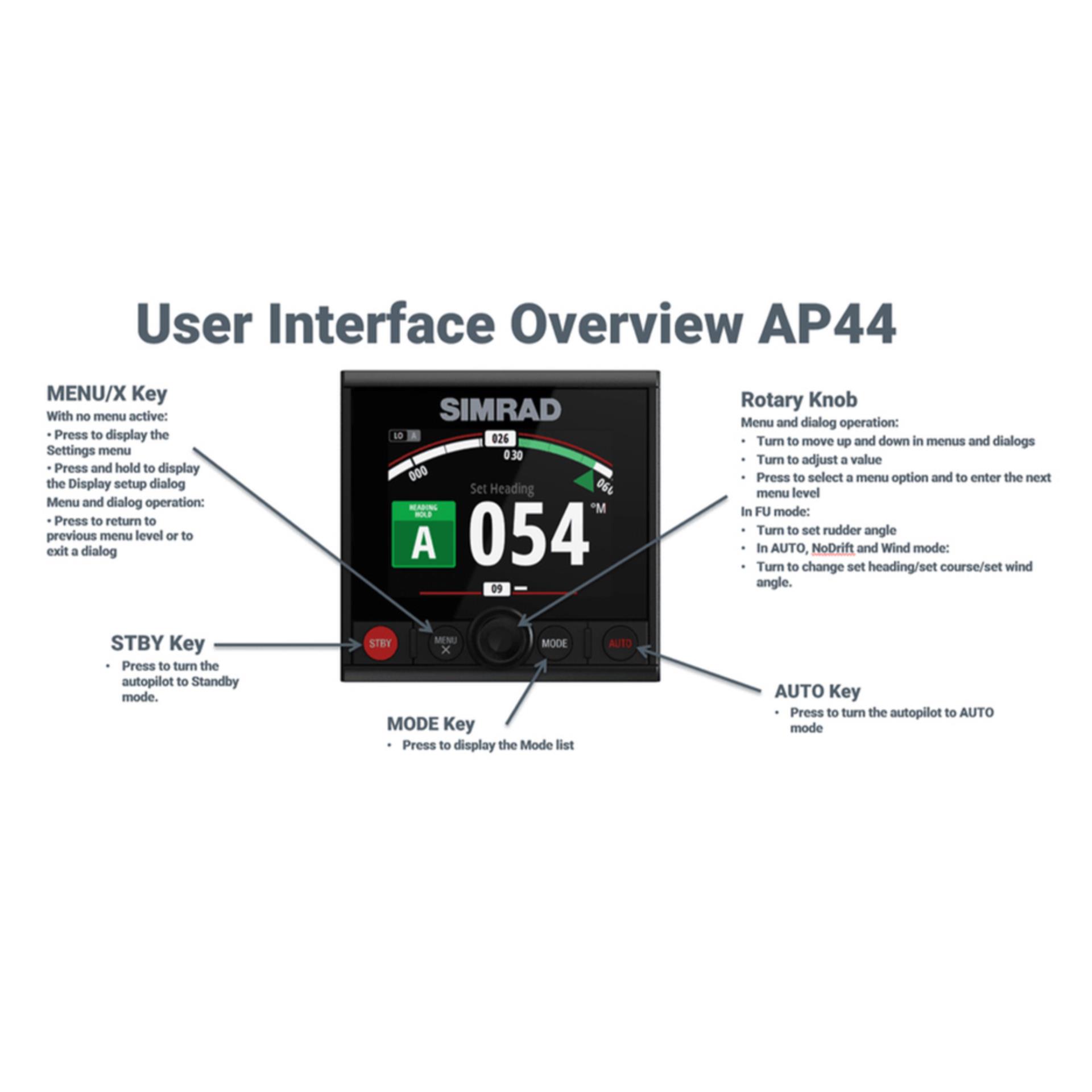 Simrad AP44, Autopilot Bedienfeld, Simrad Autopilot Steuerung, AP44 000-13289-001, NMEA2000 Autopilot, Yacht Autopilot Panel, Segelboot Autopilot, Motorboot Steuerung, Simrad NAC kompatibel, Marine Autopilot Display, Kurssteuerung Boot, Bordelektronik Simrad, Autopilot Steuerpanel, Yacht Navigation System, Gründl Bootszubehör