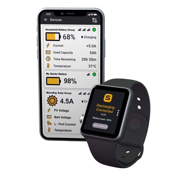 Mit der Multi-Connect-App können Sie Ihre Batterien und deren Ladezustand in Echtzeit überwachen, Warnungen einstellen und eine Reichweitenprognose erhalten. So haben Sie immer die Kontrolle über Ihre Energieversorgung, ohne Reichweitenangst.