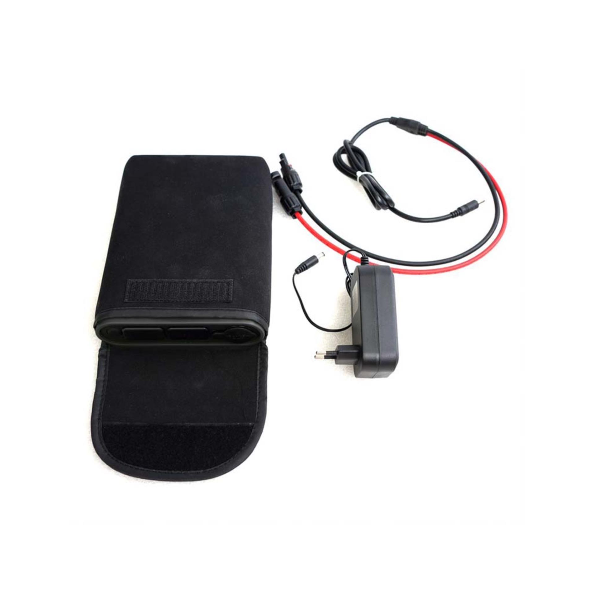- DC-in variabel 12-24V mit einer automatischen Begrenzung bei 50W, aber Solarmodul-Zulassung bei 130