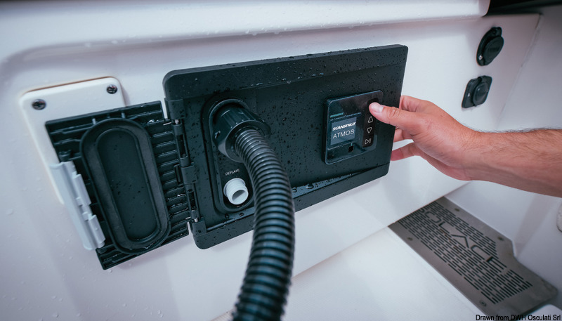 Die ATMOS ist wasserdicht nach IPX6 und speziell für den Einsatz unter anspruchsvollen Bedingungen auf See entwickelt. Ihr kompaktes, flaches Design ermöglicht den Einbau in nahezu jedes Bordpanel. Im Lieferumfang sind ein 2,5 m langer Aufblasschlauch, ein universeller Ventilanschlusssatz sowie eine robuste Storage Bag für Zubehör enthalten. Die durchschnittliche Aufblaszeit für ein SUP liegt bei nur 6–8 Minuten.