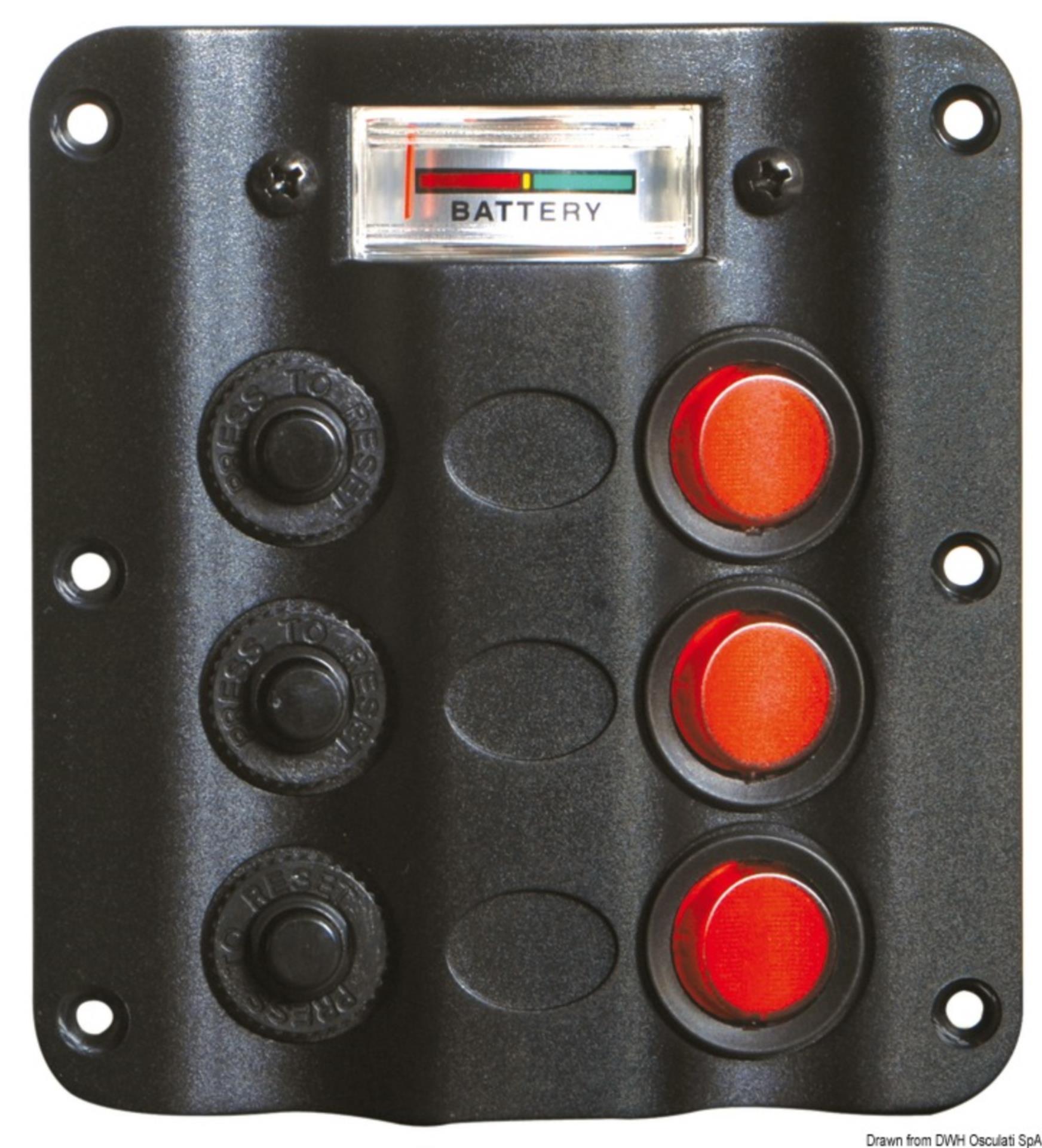 Diese Schalttafel verbindet Ästhetik mit technischer Präzision. Das innovative Wave Design und die LED-beleuchteten Wippschalter sorgen für einfache Bedienung und modernen Look, während die Thermoschmelzsicherungen die Elektronik Ihres Bootes zuverlässig schützen.