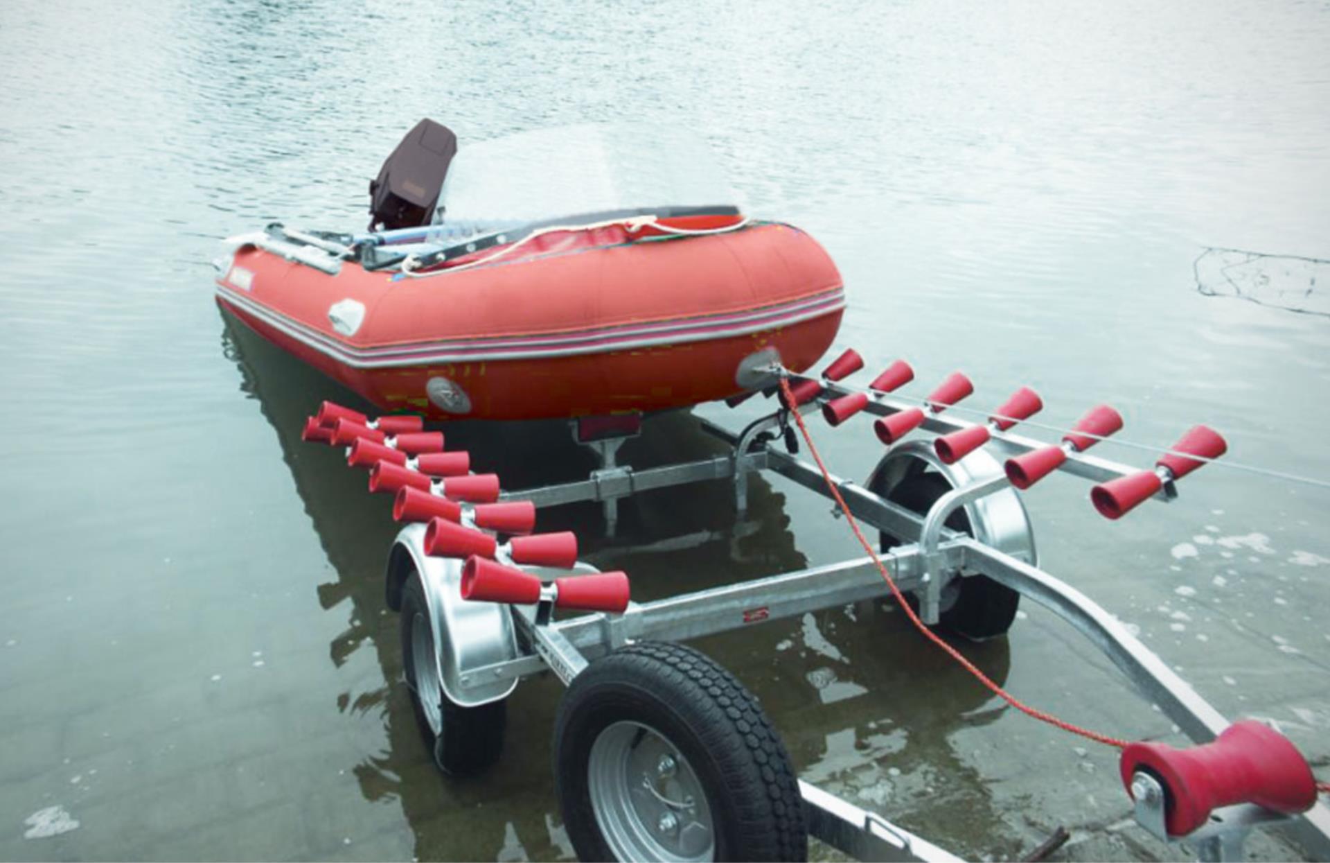 - Schlauchbootauflagen mit Trompetenrollen auf 4 Klemmstützen