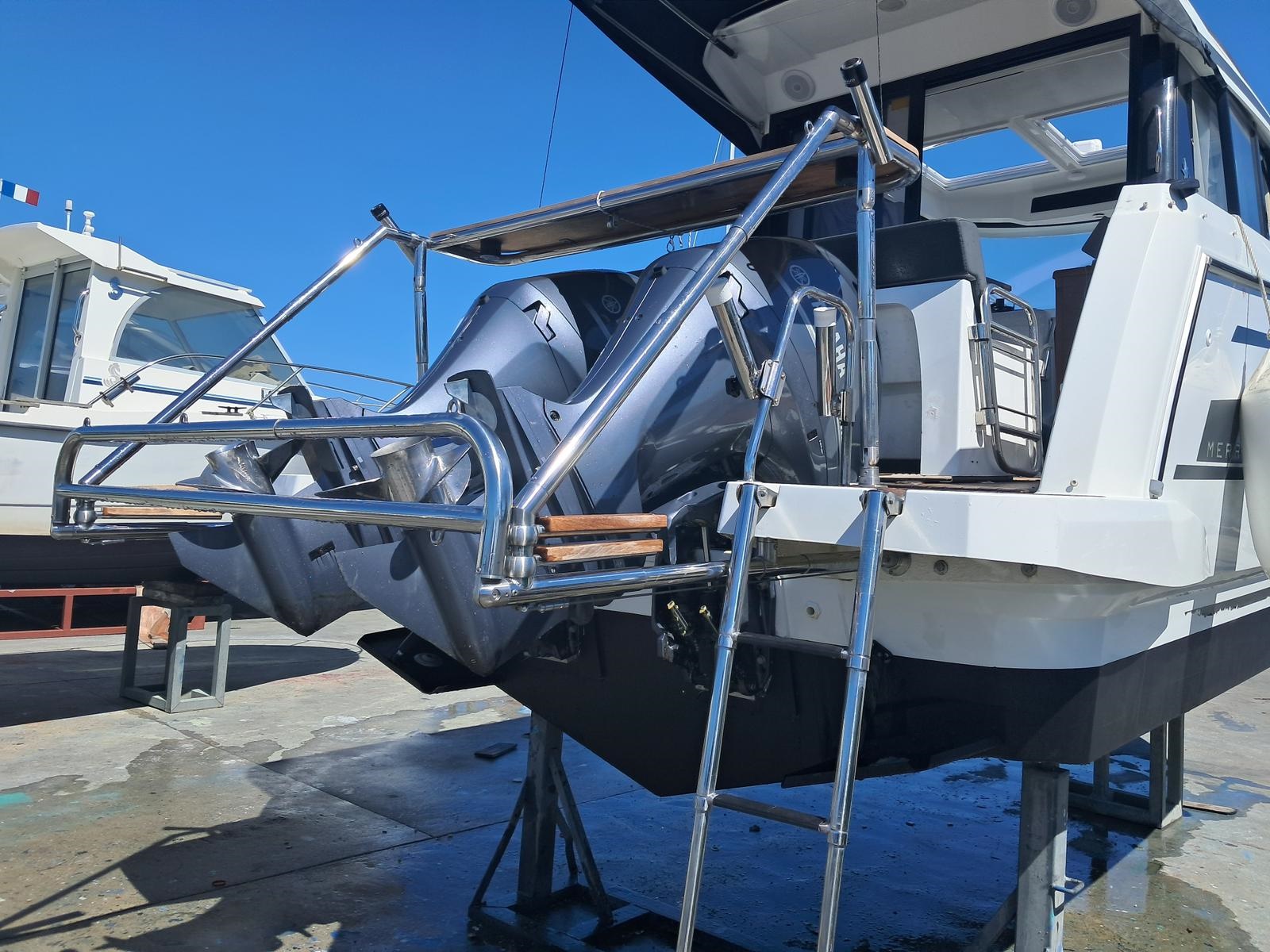 Das System besteht aus 316L-Edelstahlrohren, die die Motoren am Heck des Bootes abdecken und schützen – selbst wenn sie angehoben sind. Dank integrierter Federn absorbiert der Annexotech Stöße bei Hafenmanövern und reduziert so das Risiko von Schäden am Motor und Boot.