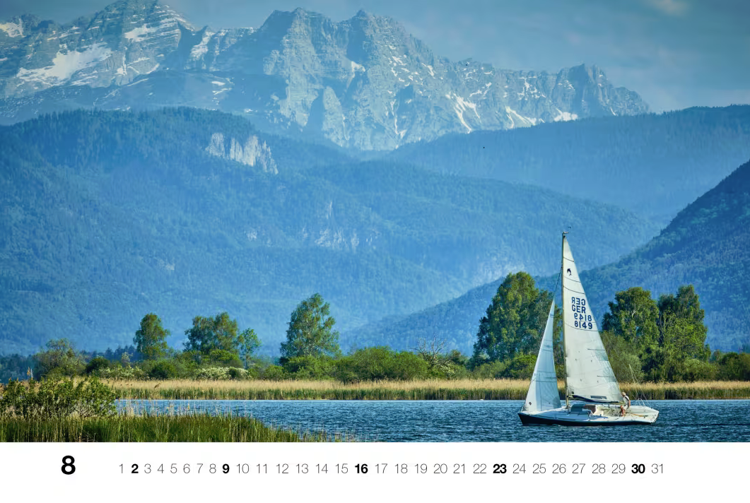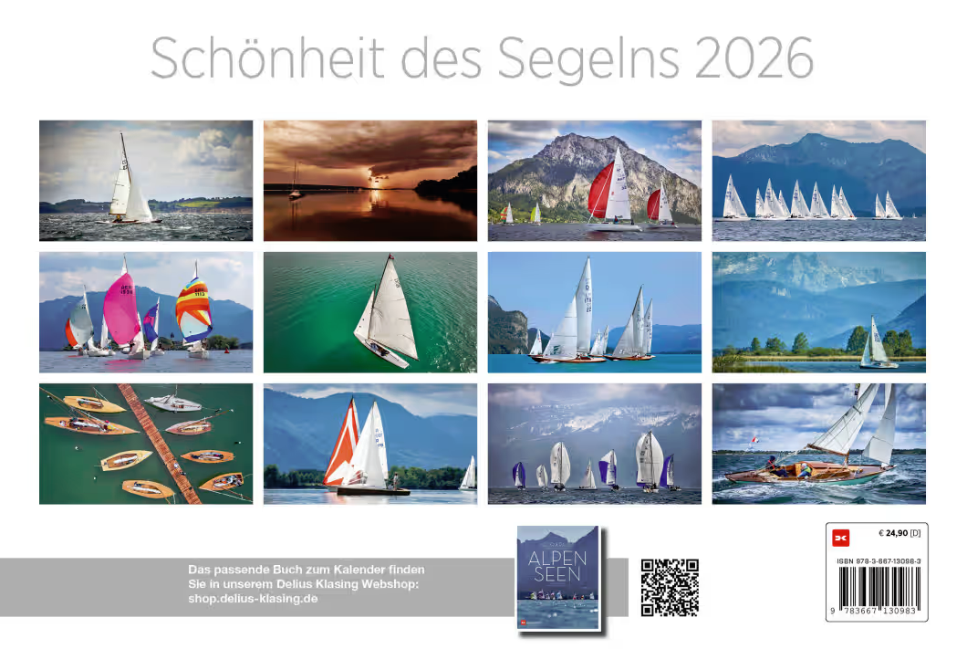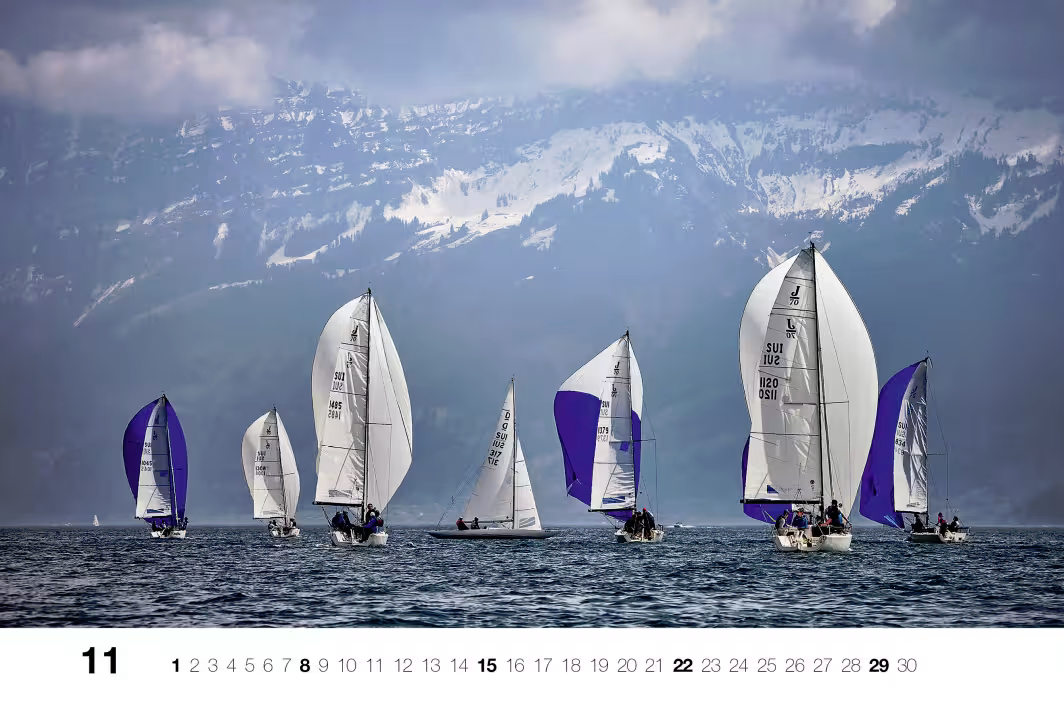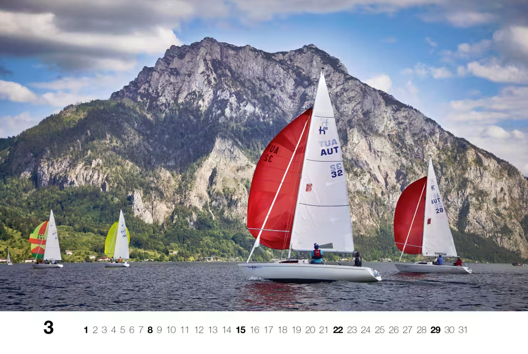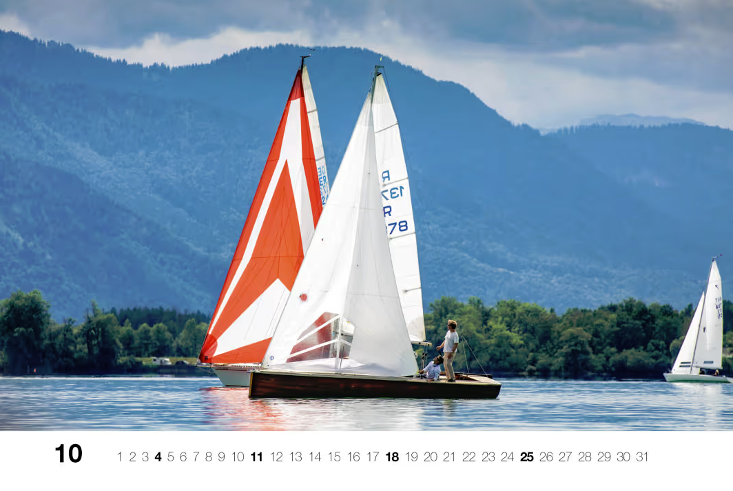 Der Schönheit des Segelns Kalender 2026 entführt Sie in eine außergewöhnliche Segelwelt: die idyllischen Alpenseen. Hoch über dem Meeresspiegel gelegen, bieten sie spektakuläre Kulissen für alle Facetten des Segelsports – von sportlichen Regatten bis zu entspannten Törns mit kleiner Crew. Die sorgfältig ausgewählten Aufnahmen zeigen die Vielfalt des Segelns zwischen klassischen Holzbooten und modernen Hightech-Yachten. Eingefangen in stimmungsvollen Bildern entsteht ein Kalender, der ein ganzes Jahr lang Lust auf das Segeln inmitten einer einmaligen Alpenlandschaft macht.