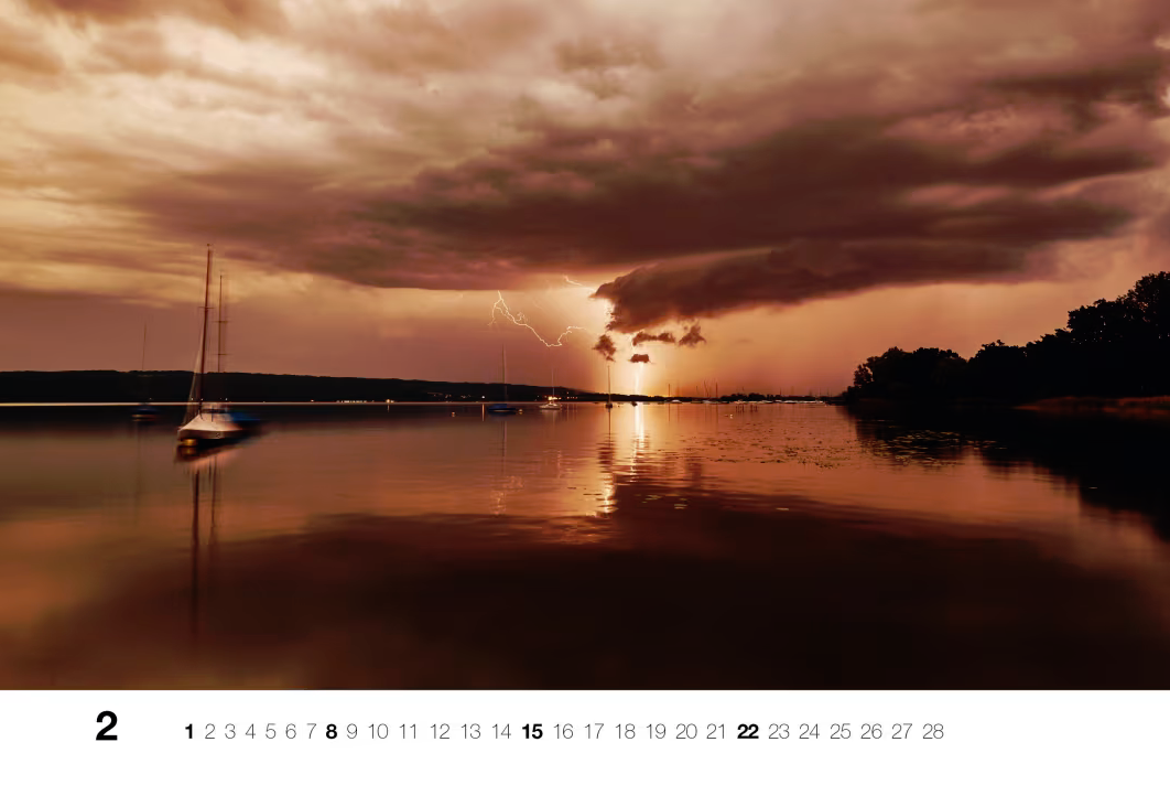 Mit 13 brillanten Farbfotografien, ergänzt durch Bilderläuterungen, hochwertiger Spiralbindung und einem großzügigen Format von 30,3 x 45,1 cm, ist dieser Kalender ein Schmuckstück für jede Wand – ob zu Hause, im Büro oder an Bord.