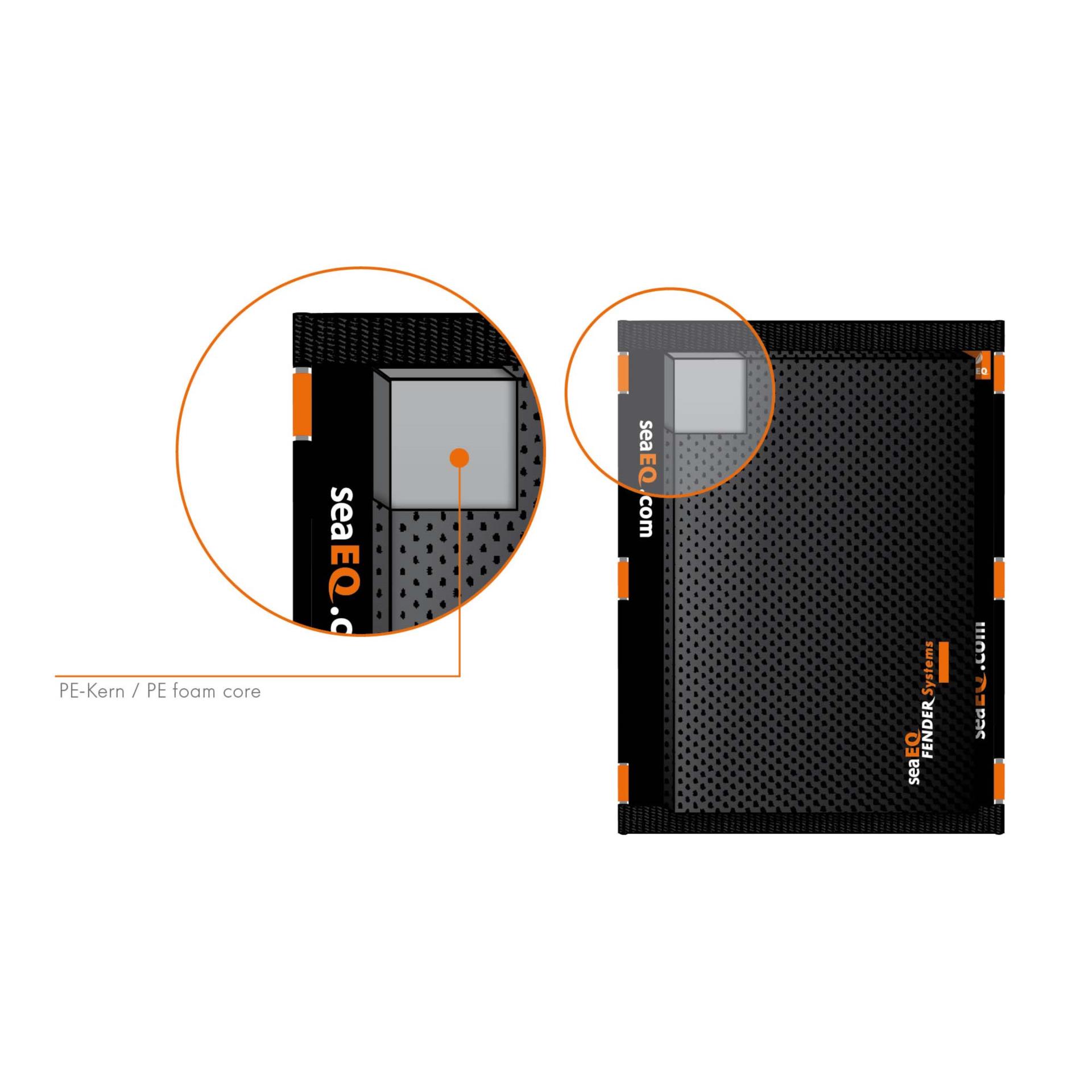- Der seaEQ-Dalbenfender besteht aus hochreißfestem, schwerem Polyestergewebe. Die dem Dalben zugewandte Seite ist PVC-beschichtet. Der Kern besteht aus einem speziellen PE-Schaum.