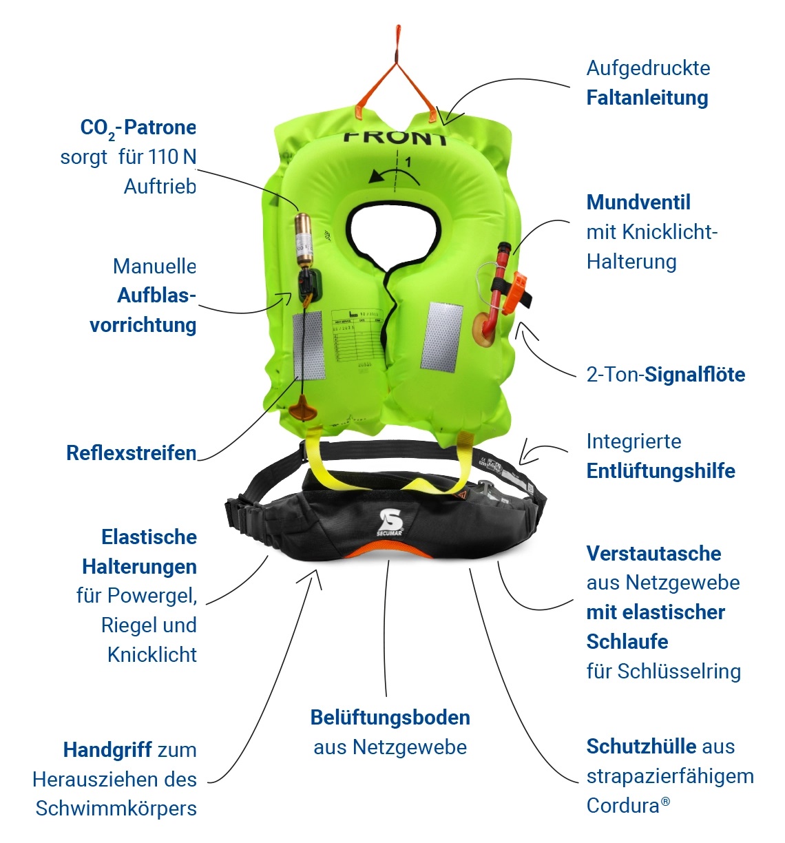 - ✔ 110N Auftrieb – Verlässliche Unterstützung im Notfall