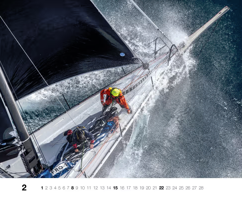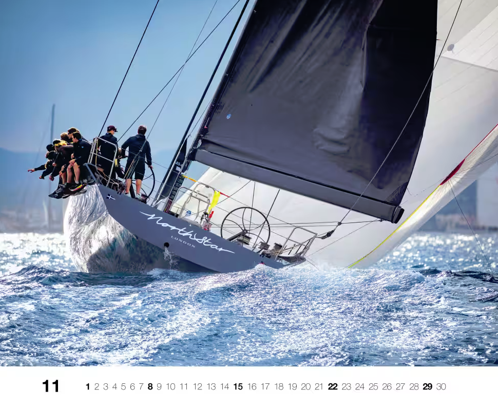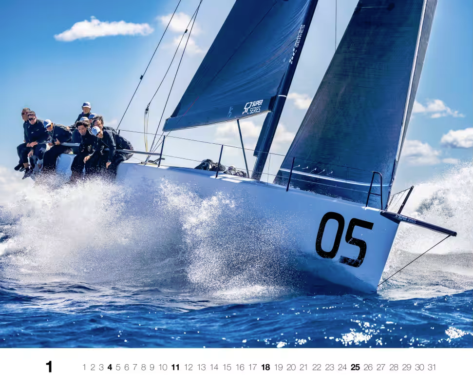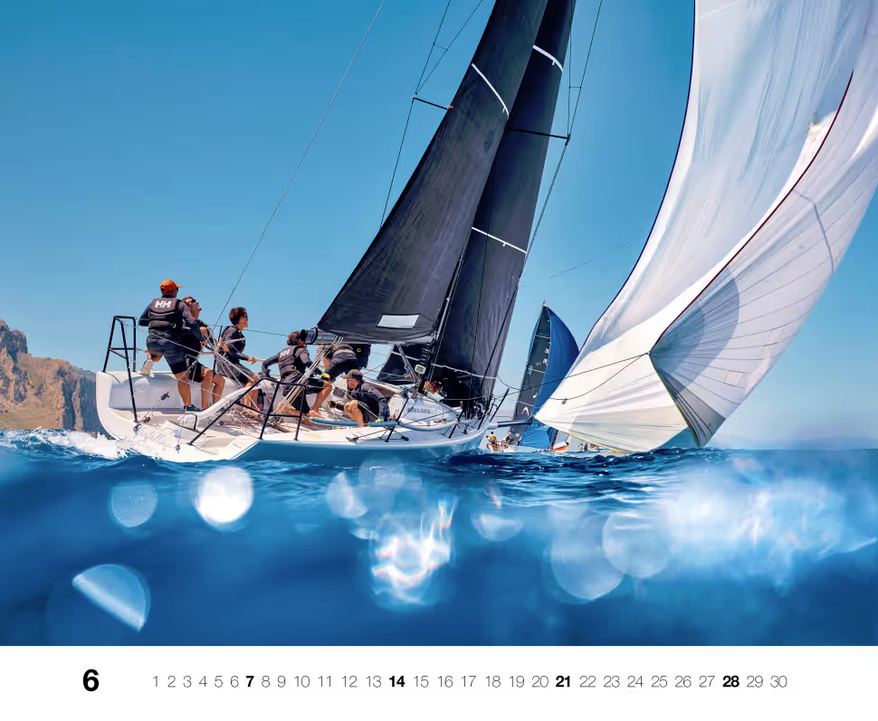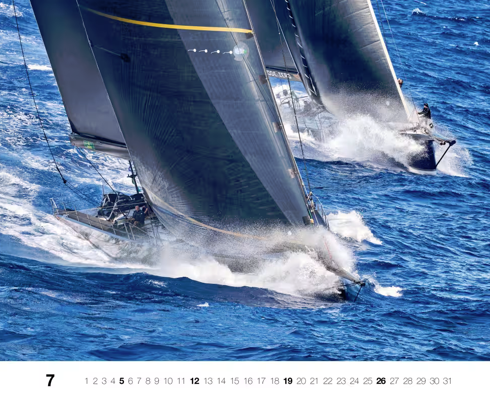 Der Segeln Kalender 2026 bietet eine faszinierende Mischung aus dynamischen Aufnahmen von Maxis, Cup-Yachten und bekannten Segelbooten. Renommierte Fotografen aus dem In- und Ausland haben die Yachten bei ihren Manövern auf hoher See eingefangen und dabei bemerkenswerte Perspektiven und ausgefallene Bildausschnitte gewählt, die diesen Kalender zu einem echten Klassiker machen.