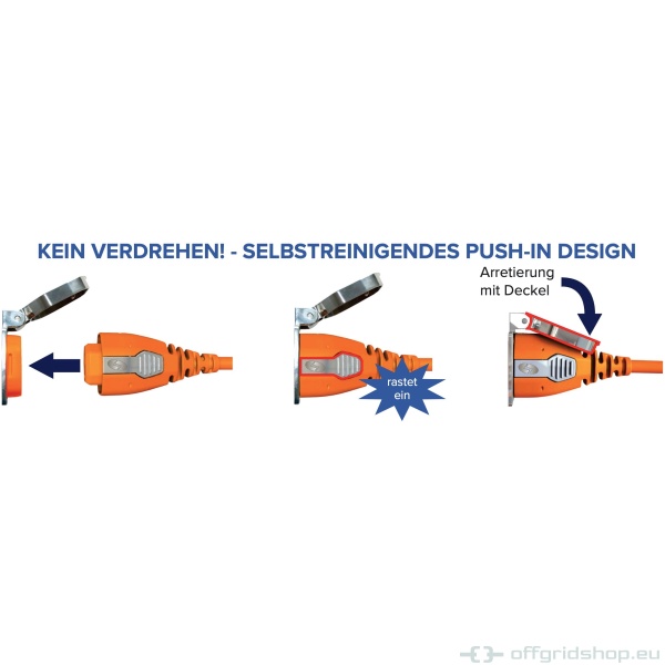 - Edelstahl-Kontakte: 20x größere Kontaktfläche als Drehverriegelungen.