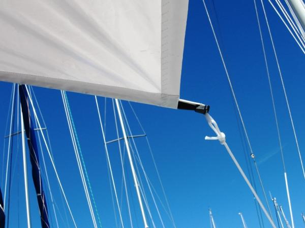 Das stabile GFK-Gestänge mit unserem "Easy-Connect"-System lässt sich mühelos zusammenstecken und an der Reling einziehen und verspannen.