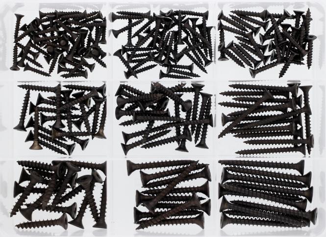 Sortimentskasten Spanplattenschrauben Senkkopf TX 3,0/5,0 mm, schwarz 210-teilig / A4