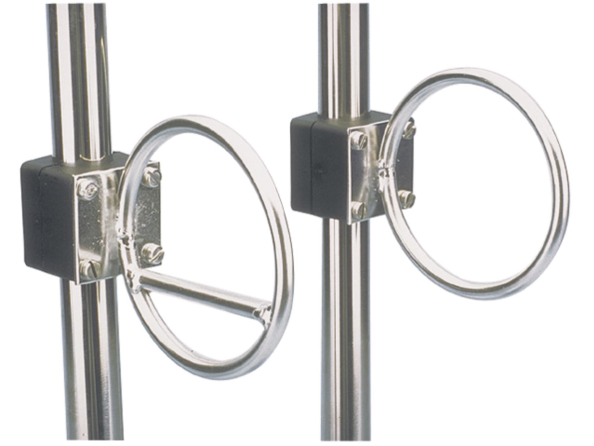 Ein Halter mit einfachem Ring (Innendurchmesser 90mm Ø), und ein Halter mit Ring und Quersteg zur Fixierung des Spinakerbaum-Beschlages.