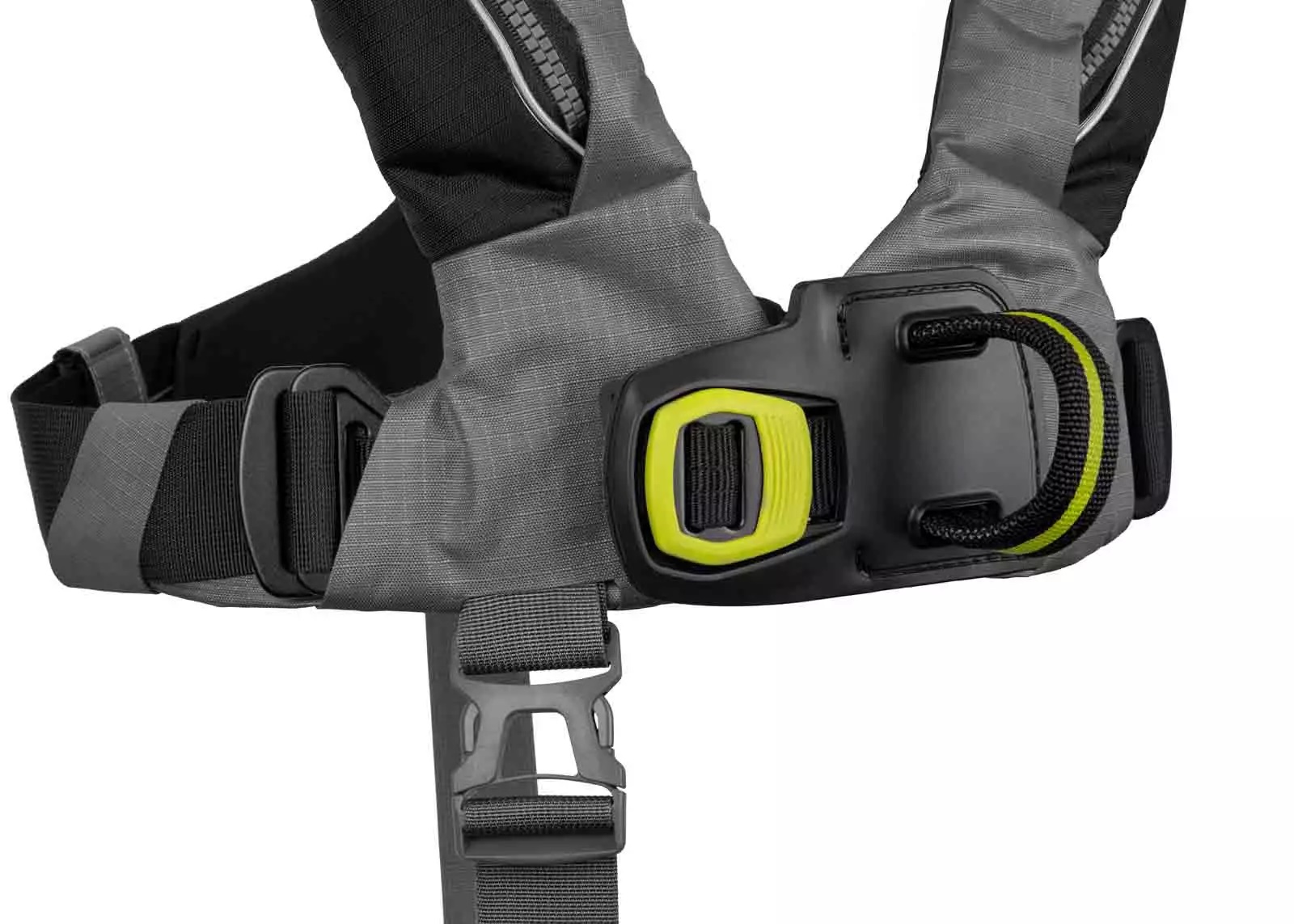 Die optimierte Schnalle und das erweiterte Schulterpassform-System sorgen für eine perfekte Anpassung an den Körper des Trägers. Dadurch bleibt die Rettungsweste selbst bei langen Törns angenehm zu tragen – vom frühen Morgen bis zum späten Abend. Ergänzt wird dies durch ein verbessertes Rückenprofil, das eine ergonomische und gleichzeitig unauffällige Passform bietet.