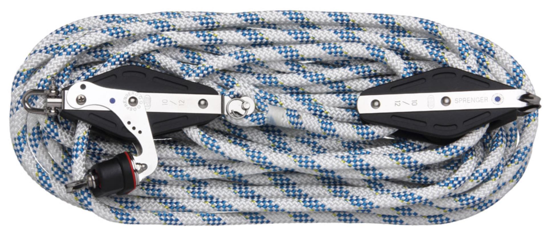 Die Talje wird mit professionell gespleißtem, deutschem Qualitäts-Tauwerk geliefert und kommt in einer praktischen SPRENGER-Tasche mit Reißverschluss.