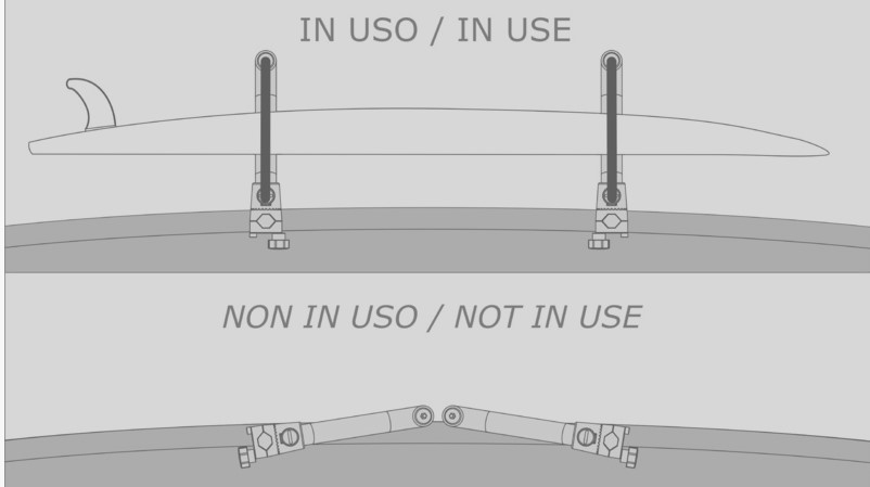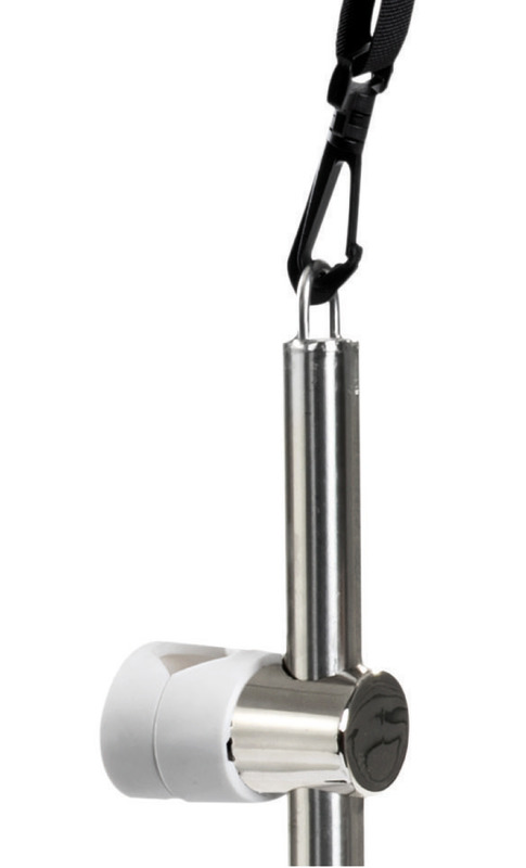Die Halterung eignet sich für Rohrdurchmesser von 22 bis 30 mm und ist damit universell an vielen Bootstypen nutzbar. Dank des Schnellverschluss-Knopfsystems können die Arme jederzeit in verschiedenen Winkeln eingestellt werden – perfekt für schmale Stege oder breite SUPs.