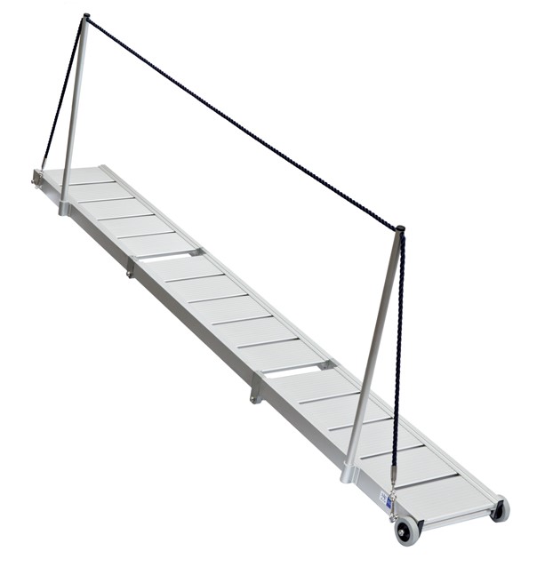 Sichern Sie sich einen komfortablen und sicheren Einstieg mit der Gangway LEICHT – Ihrer idealen Bootsgangway aus seewasserbeständigem Aluminium und Edelstahl. Dieses hochwertige Material sorgt für maximale Stabilität bei minimalem Gewicht. Je nach Modell wiegt die Gangway nur 11 bis 16,5 kg und hält Belastungen von bis zu 120 kg stand.