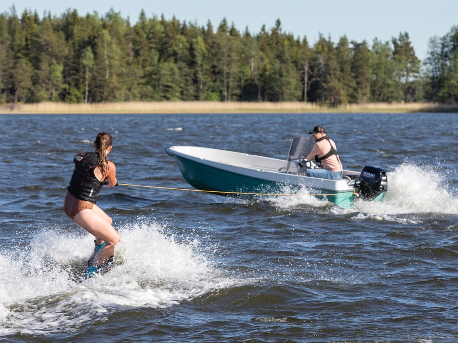 Das Terhi 400 C überzeugt durch seine hervorragenden Fahreigenschaften über einen breiten Geschwindigkeitsbereich. Selbst mit einem kleineren Außenbordmotor erreicht das Boot eine stabile und kontrollierte Fahrt, was es besonders effizient und vielseitig einsetzbar macht.