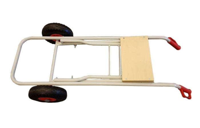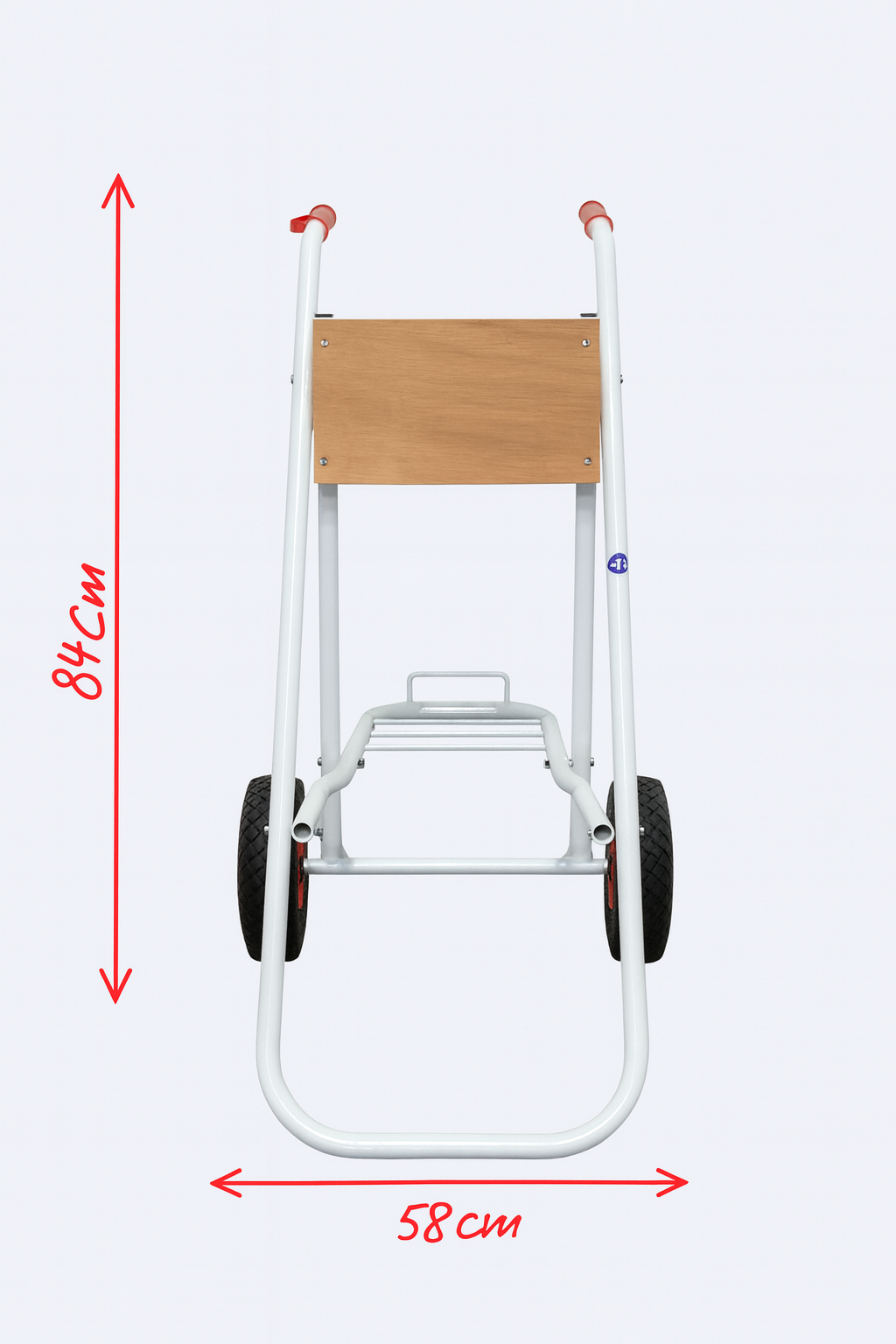 Durch das faltbare Design lässt sich der Wagen leicht verstauen und transportieren, während rutschfeste Gummibänder den Motor während des Transports zuverlässig sichern. Eine integrierte Halterung für den Kraftstofftank sorgt für zusätzlichen Komfort und Ordnung.