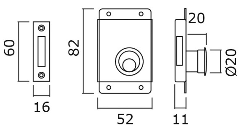Tür- & Schottschloss mit Knopf, 20 mm rechts