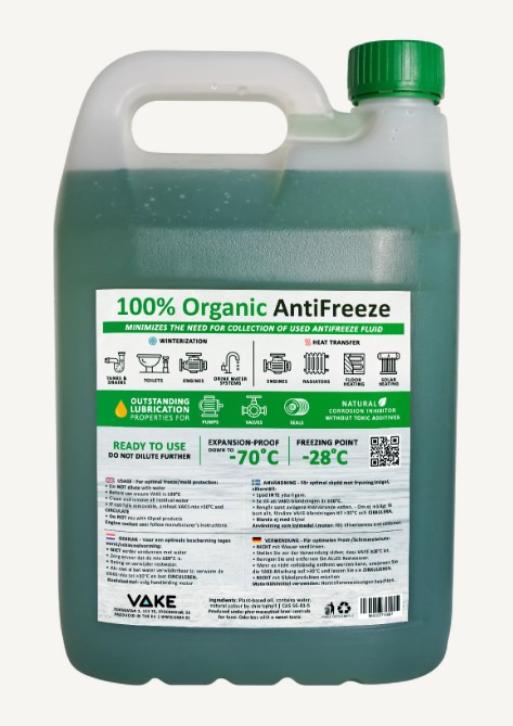 Das VAKE Organic AntiFreeze Frostschutzmittel ist die umweltfreundliche und nachhaltige Alternative zu herkömmlichen Frostschutzmitteln auf Glykolbasis. Hergestellt aus rein pflanzlichen Inhaltsstoffen, bietet es zuverlässigen Schutz für Trinkwasser- und Abwasserleitungen, Toiletten und Motoren. Es schützt vor Frost, Korrosion und Oxidation und hat gleichzeitig eine schmierende Wirkung, die Dichtungen vor dem Austrocknen bewahrt.